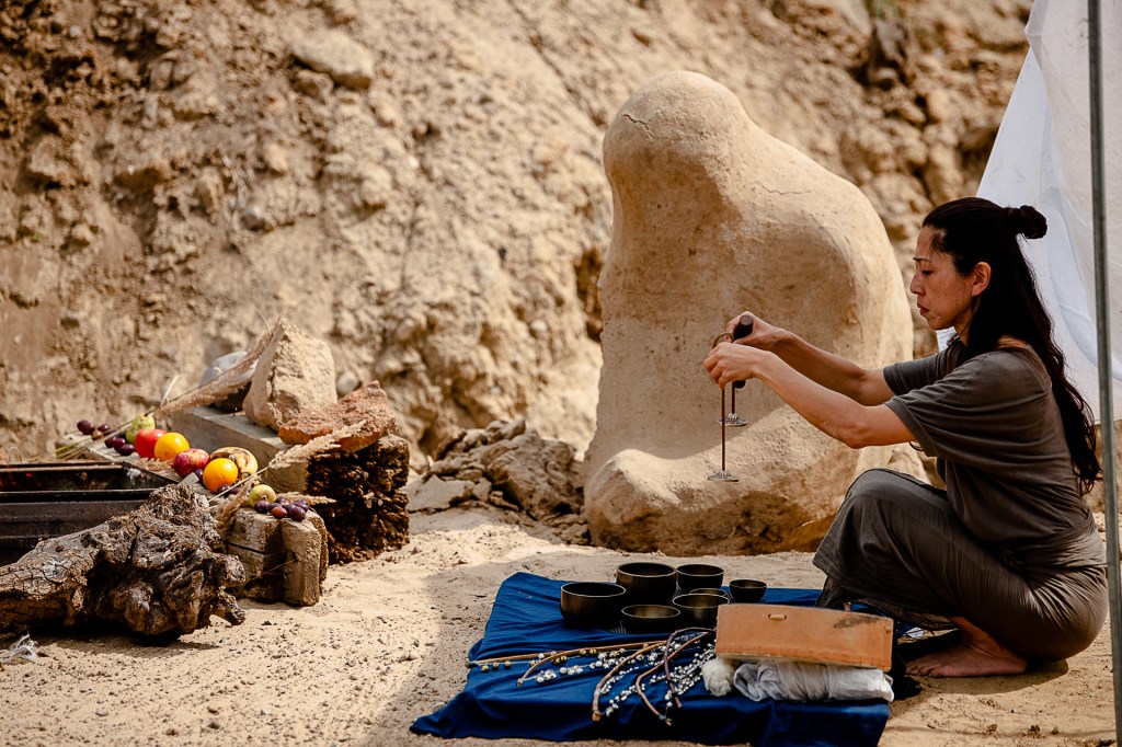 In dieser Residenz suchte der Butoh Tänzer Atsushi Takenouchi auf dem KunstAcker die Verbindung zwischen Natur und Mensch. Die Musikerin Hiroko Komiya nutzte den Erd-Raum im Bodenlabor für ihre Recherche zu Tönen, Geräuschen und Musik in der Natur.
